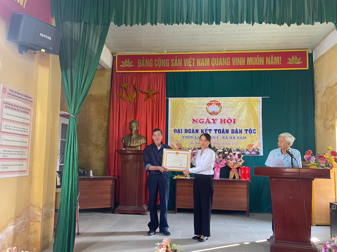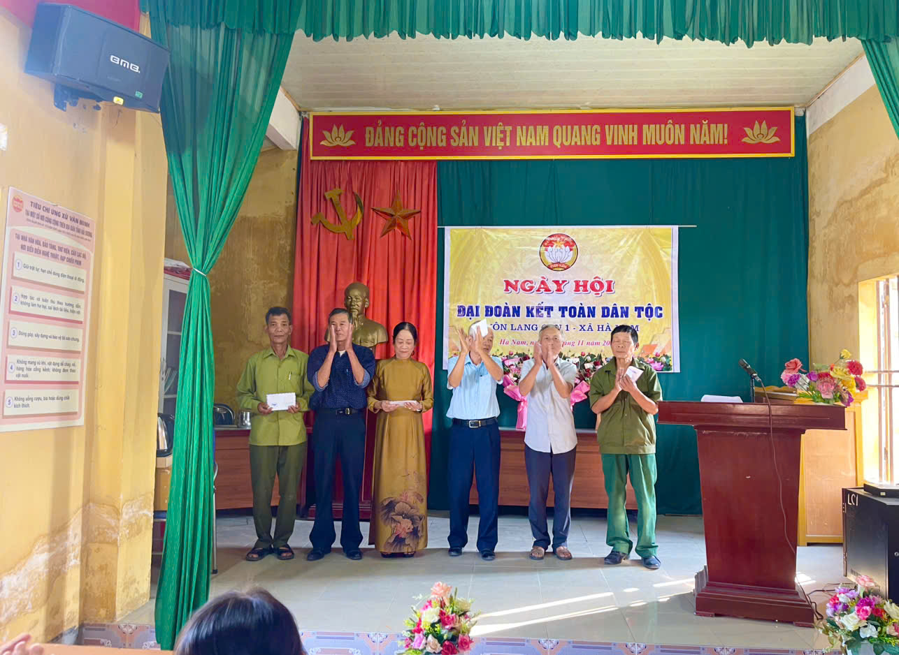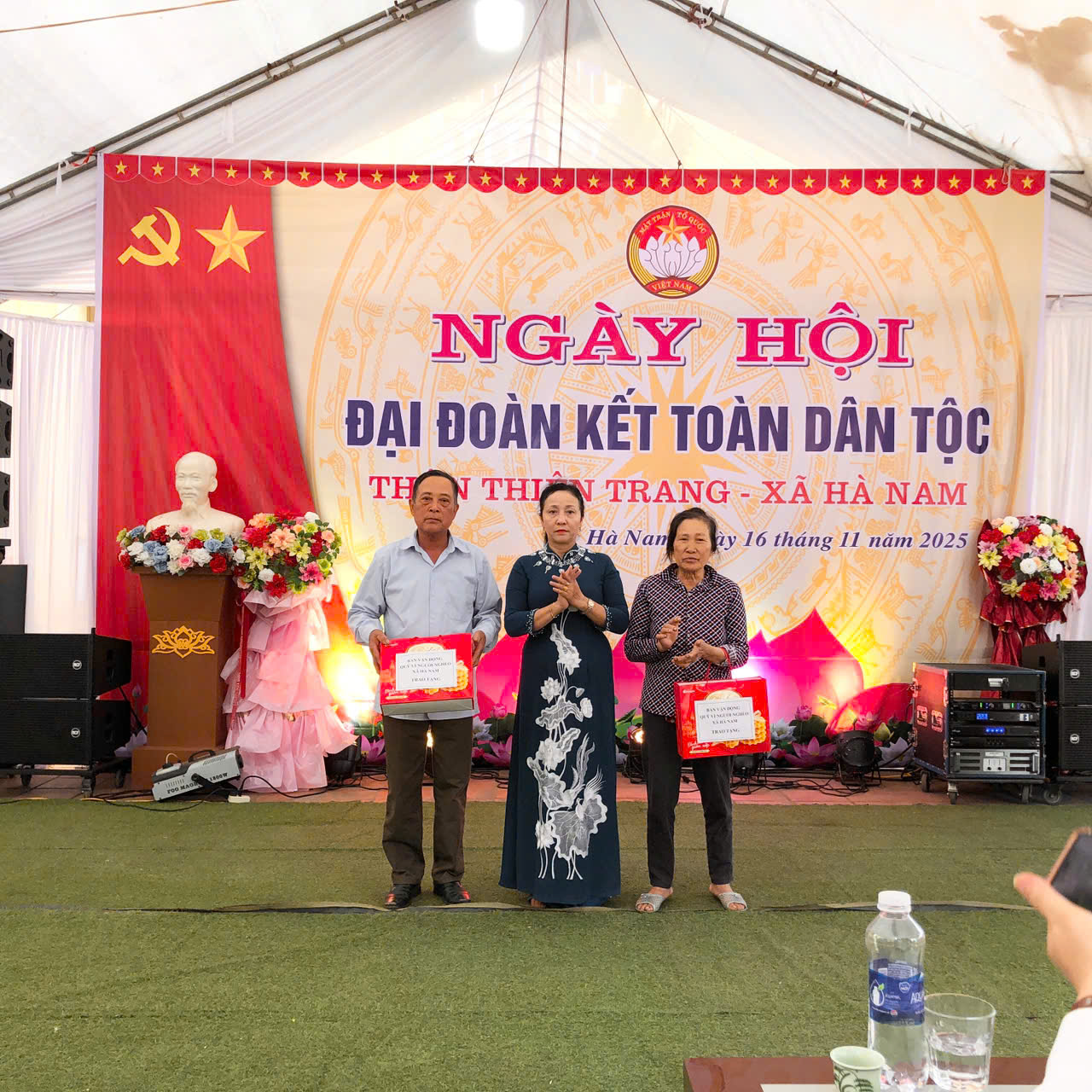 Phần hội ở các thôn được tổ chức phong phú với hoạt động văn nghệ, thể thao, và bữa cơm Đại đoàn kết, củng cố tình làng nghĩa xóm, tăng cường gắn kết giữa các hộ dân. Nhân dịp này, Ủy ban MTTQ xã Hà Nam trích Quỹ “Vì người nghèo” trao 33 suất quà hỗ trợ các hộ nghèo và hộ có hoàn cảnh khó khăn ở các thôn, với tổng trị giá trên 18 triệu đồng.
