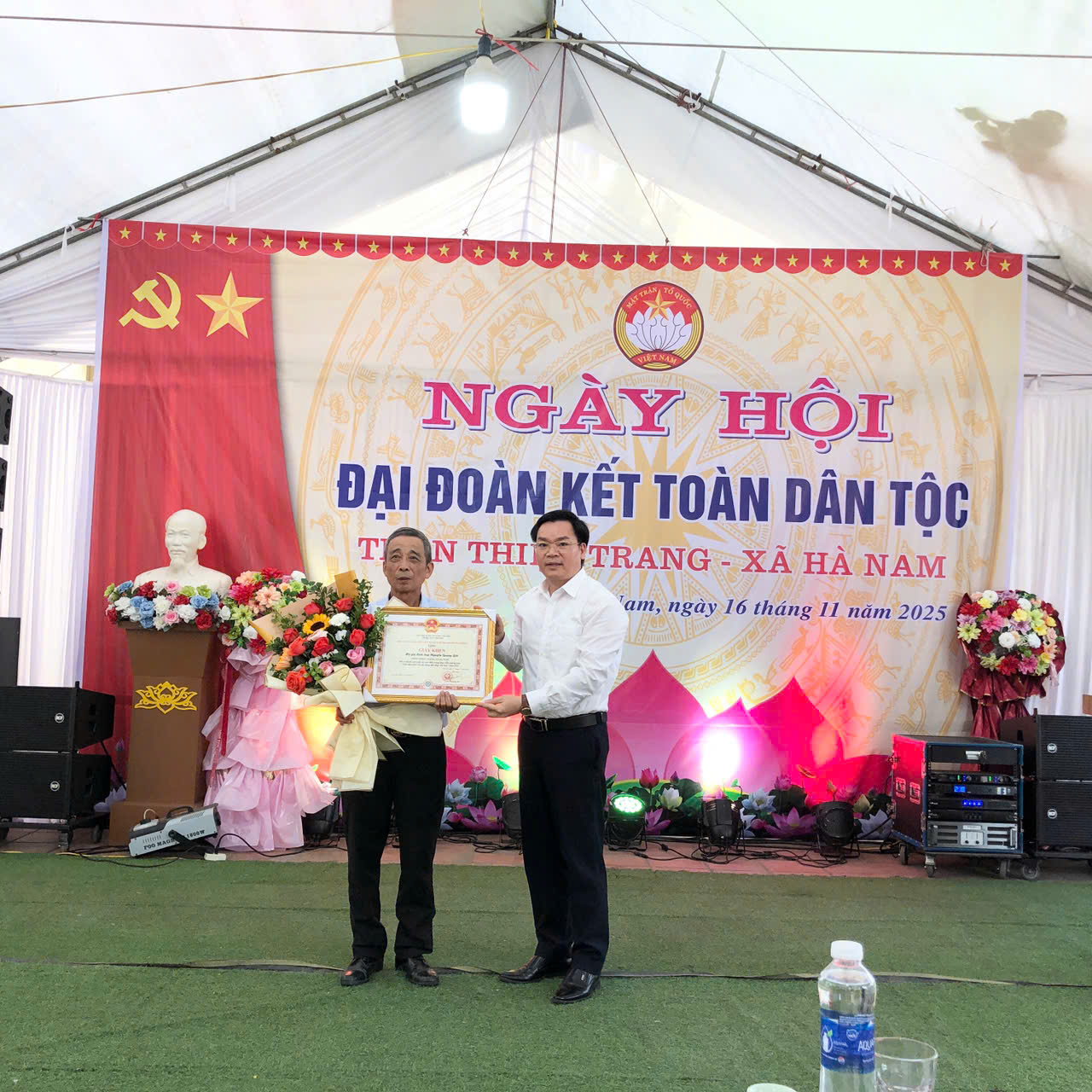 Từ ngày 14 đến 16/11, các thôn trên địa bàn xã Hà Nam đồng loạt tổ chức Ngày hội Đại đoàn kết toàn dân tộc, tạo không khí sôi nổi, đoàn kết trong toàn xã. Ngày hội đều có sự tham dự của lãnh đạo xã, Ủy ban MTTQ xã, các ban ngành đoàn thể cùng đông đảo nhân dân địa phương.Trong đó, thôn Văn Tảo được chọn làm điểm cấp xã tổ chức vào chiều 14/11/2025.
