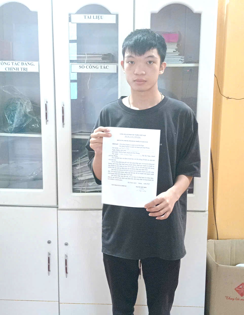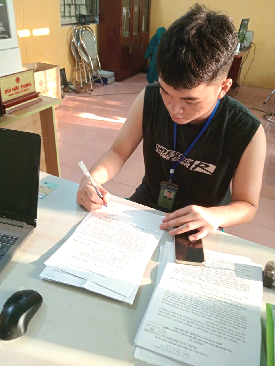Thanh niên Lê Thái Vương thôn Xuân Áng viết đơn tình nguyện nhập ngũ năm 2026