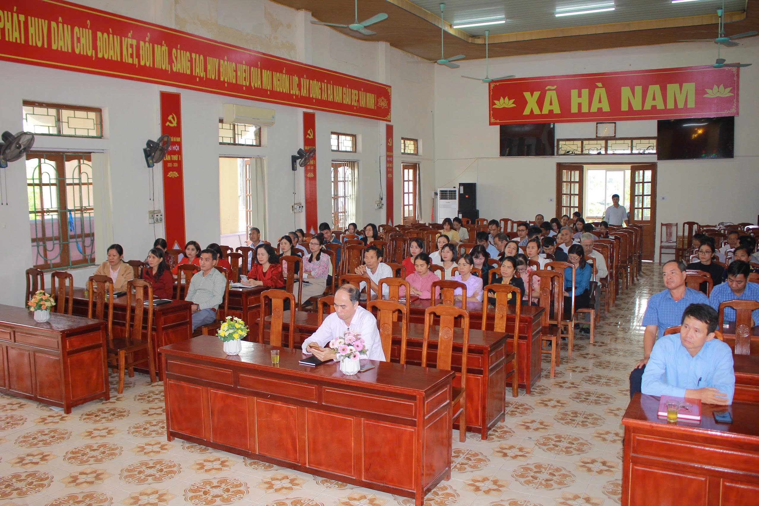 Tại điểm cầu xã Hà Nam, tham dự hội nghị có đại diện Thường trực Đảng ủy, Ban Thường vụ, Ban Chấp hành Đảng bộ, bí thư các chi bộ trực thuộc và cán bộ được giao nhiệm vụ chuyển đổi số trong các tổ chức đảng.
