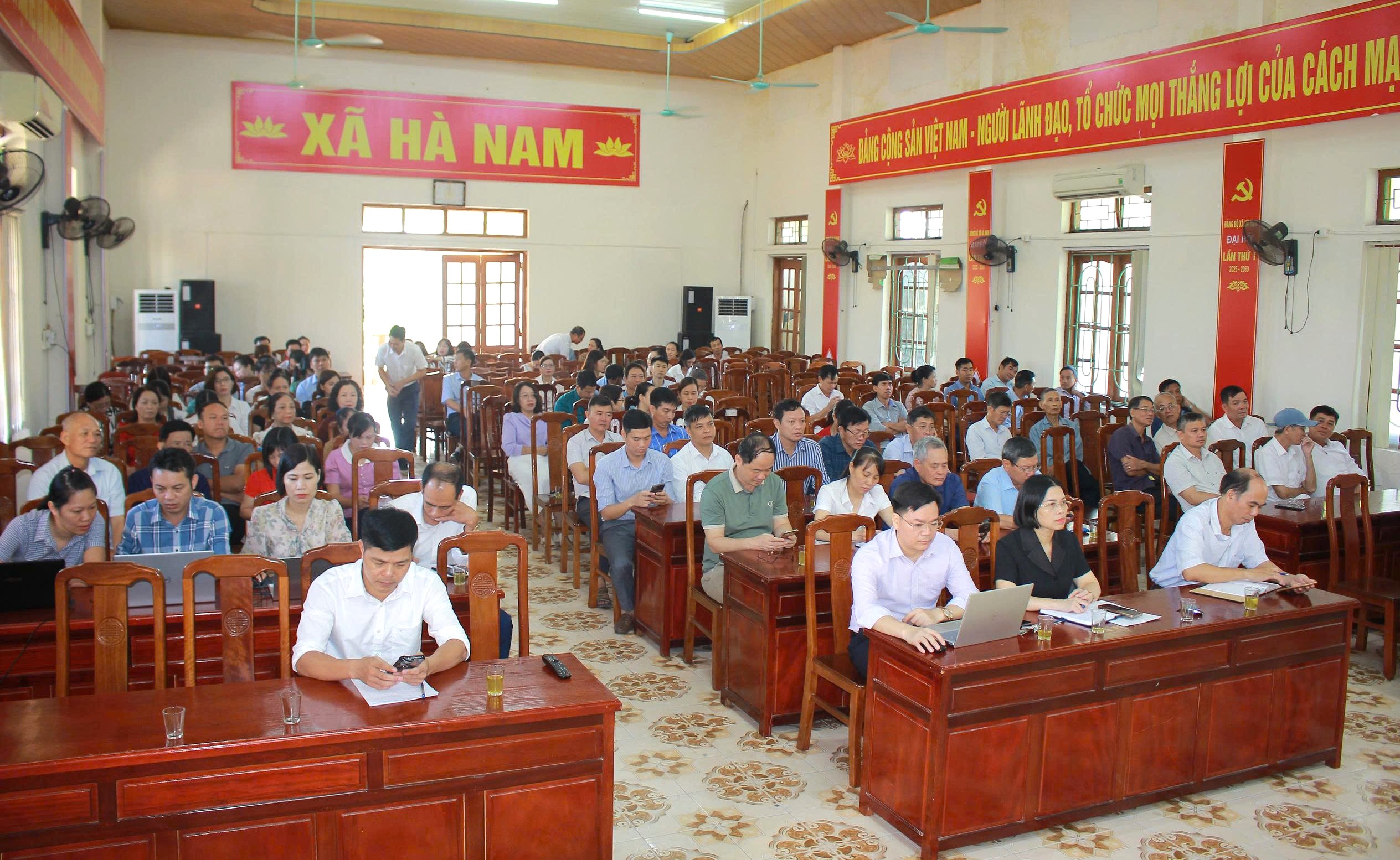 Tham dự hội nghị tại điểm cầu xã Hà Nam có Đồng chí Hoàng Thị Thúy Hà-Bí thư Đảng ủy- Chủ tịch HĐND xã, chủ trì điểm cầu. Cùng với đội ngũ ủy viên ban chấp hành Đảng bộ xã; Ủy viên ủy ban kiểm tra Đảng ủy xã; trưởng, phó ban, phòng, mặt trận tổ quốc và các đoàn thể, đơn vị sự nghiệp xã; toàn thể cán bộ, đảng viên của cơ quan đảng ủy, chính quyền xã; bí thư chi bộ, trưởng thôn; hiệu trưởng, phó hiệu trưởng các trường trung học cơ sở, tiểu học, mầm non đóng trên địa bàn xã; các đồng chí nguyên Ủy viên Ban Thường vụ, Phó Chủ tịch HĐND, UBND cấp huyện, xã đã nghỉ hưu trên địa bàn.