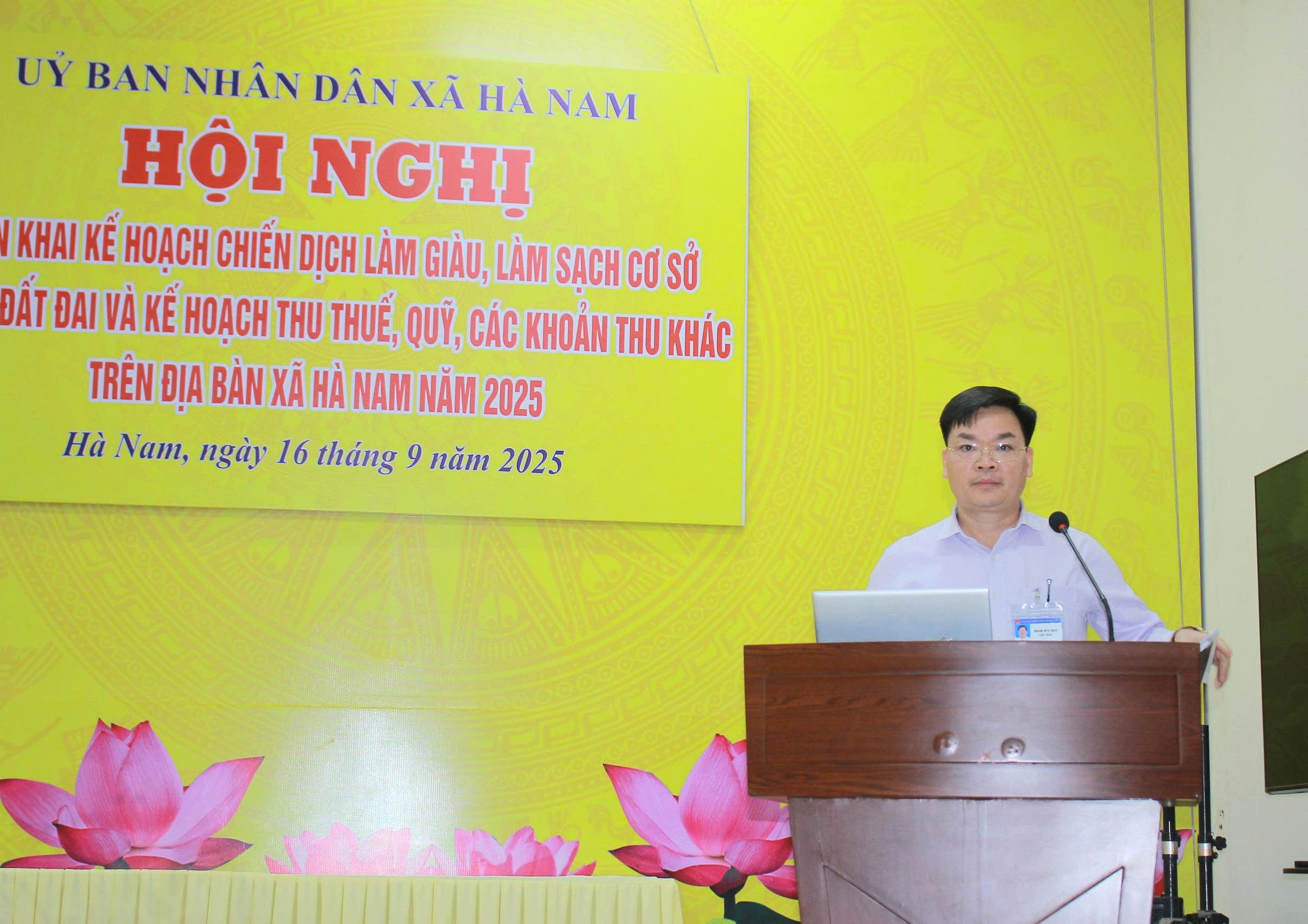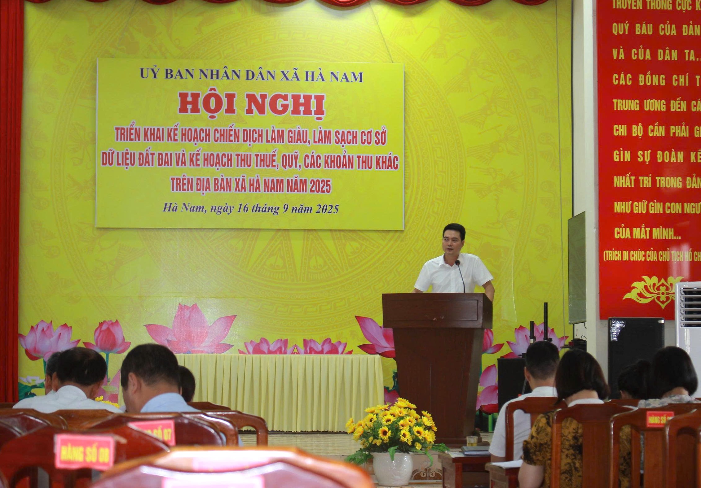 Chiều 16/9, UBND xã Hà Nam tổ chức hội nghị triển khai kế hoạch thu thuế, quỹ và các khoản thu khác; đồng thời triển khai thực hiện chiến dịch làm giàu, làm sạch cơ sở dữ liệu (CSDL) đất đai trên địa bàn xã.